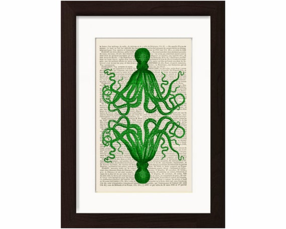 Immagine Speculare Verde Polpo Stampa Su Vintage 10 Etsy
