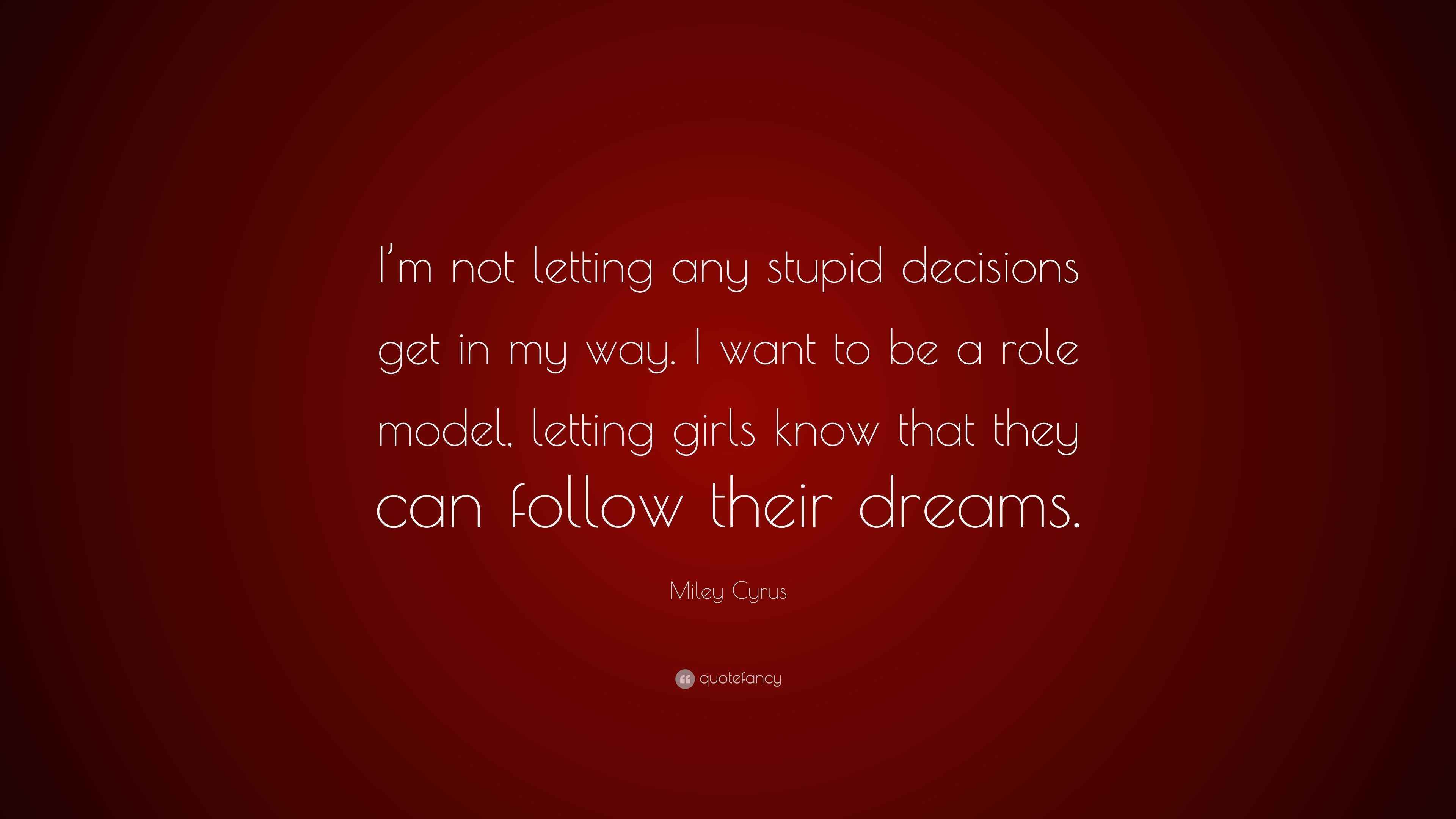 Miley Cyrus Quote I M Not Letting Any Stupid Decisions Get In My Way I Want To Be A Role Model Letting Girls Know That They Can Follow T 10 Wallpapers Quotefancy