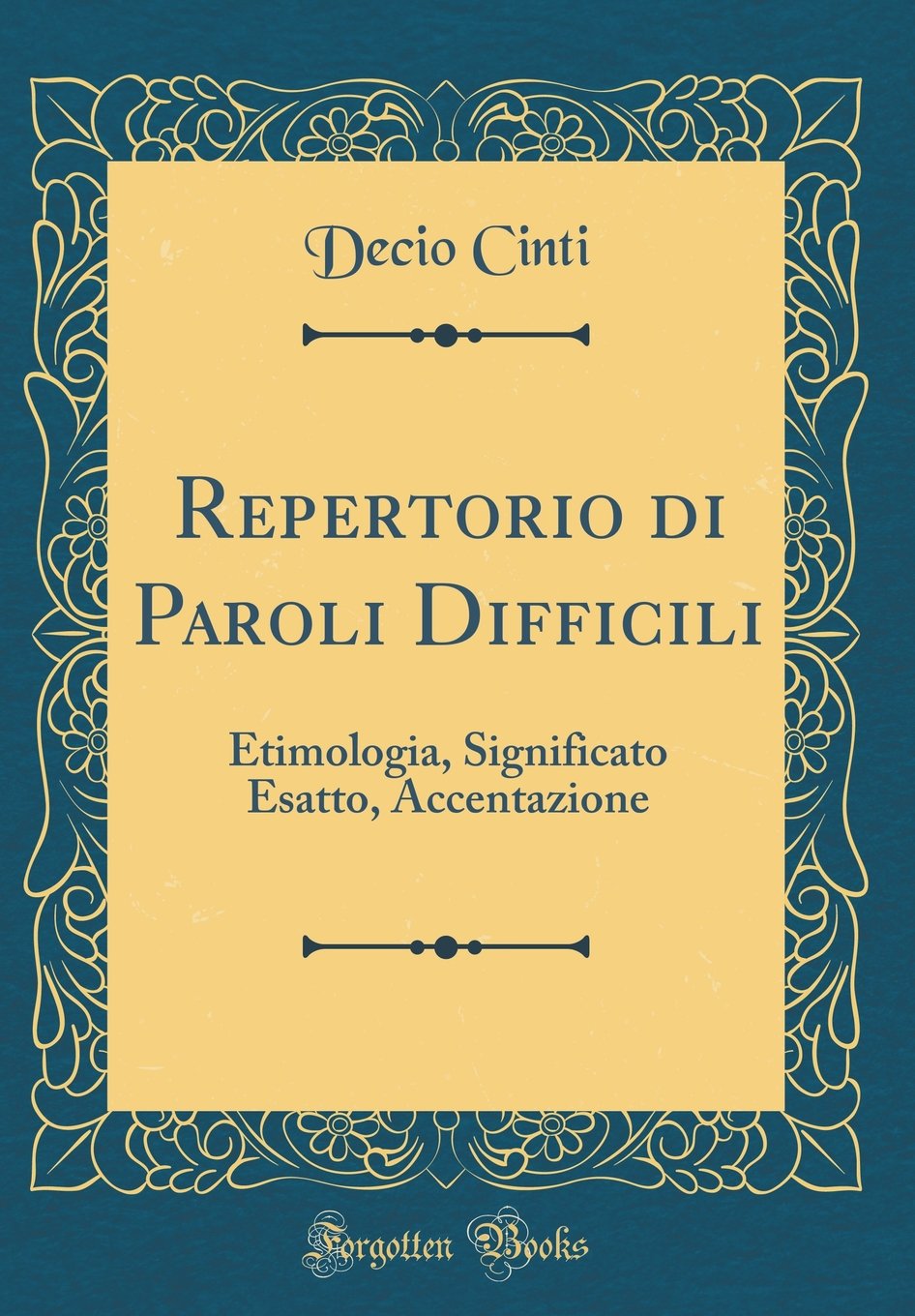 Repertorio Di Paroli Difficili Etimologia Significato Esatto Accentazione Classic Reprint By Cinti Decio Amazon Ae