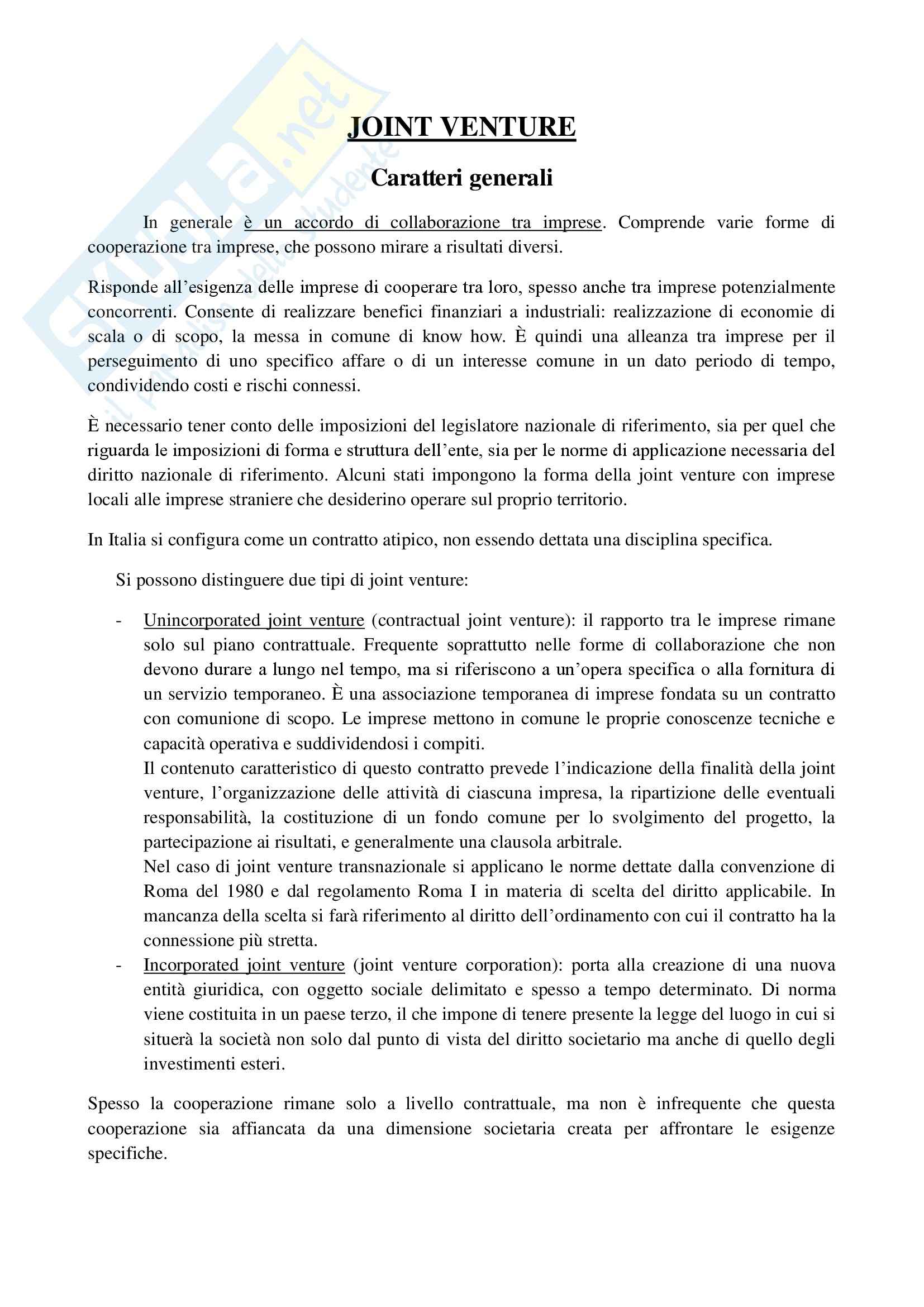 Appunti di Economia dei Gruppi joint venture 1 APPUNTI DI ECONOMIA DEI GRUPPI wwwprofland135it Autore profman1 2 Si ricorda che luso degli appunti qui presenti è consentito per solo uso personale e di studio;. Tratti di agenzia e concessione, contratti di franchising, contratti di licenza e di trasferimento di tecnologia, contratti di joint venture) Ove la clausola sia immediatamente riferibile a uno di tali tipi contrattuali, è reso riconoscibile dalla denominazione utilizzata per identificare le parti (così, per fare degli esempi, sono stati. 511 Equity joint venture agreement 512 Lettera d’intenti 513 Esempi di clausole contrattuali in lingua inglese 6 IVA 61 Documento di trasporto (DDT) 611 Beni in conto deposito.