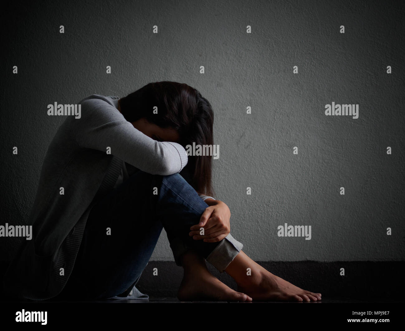 Ragazza Triste E Sola Che Si Siede In Un Angolo Fotografia Stock Immagine Di Disperazione Problema