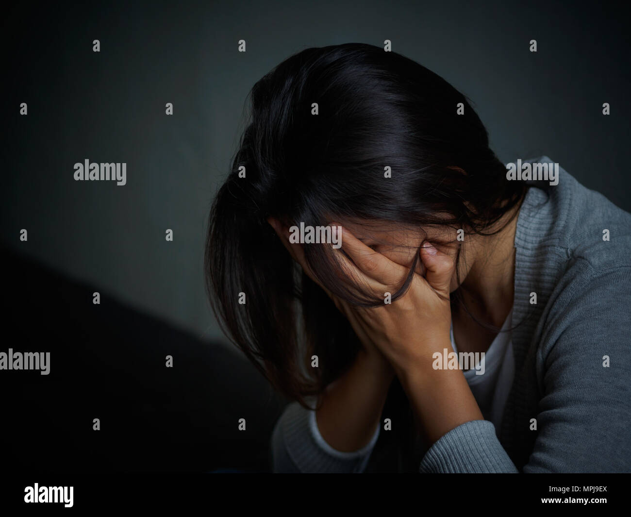 Immagini Stock Giovane Bella Donna Latina O Ragazza Teenager Seduta Triste E Sola Nell Oscurita liente Sentirsi Depressi E Disperati Nel Concetto Di Disturbo Mentale E Nutrizione Anoressia E Bulimia Image