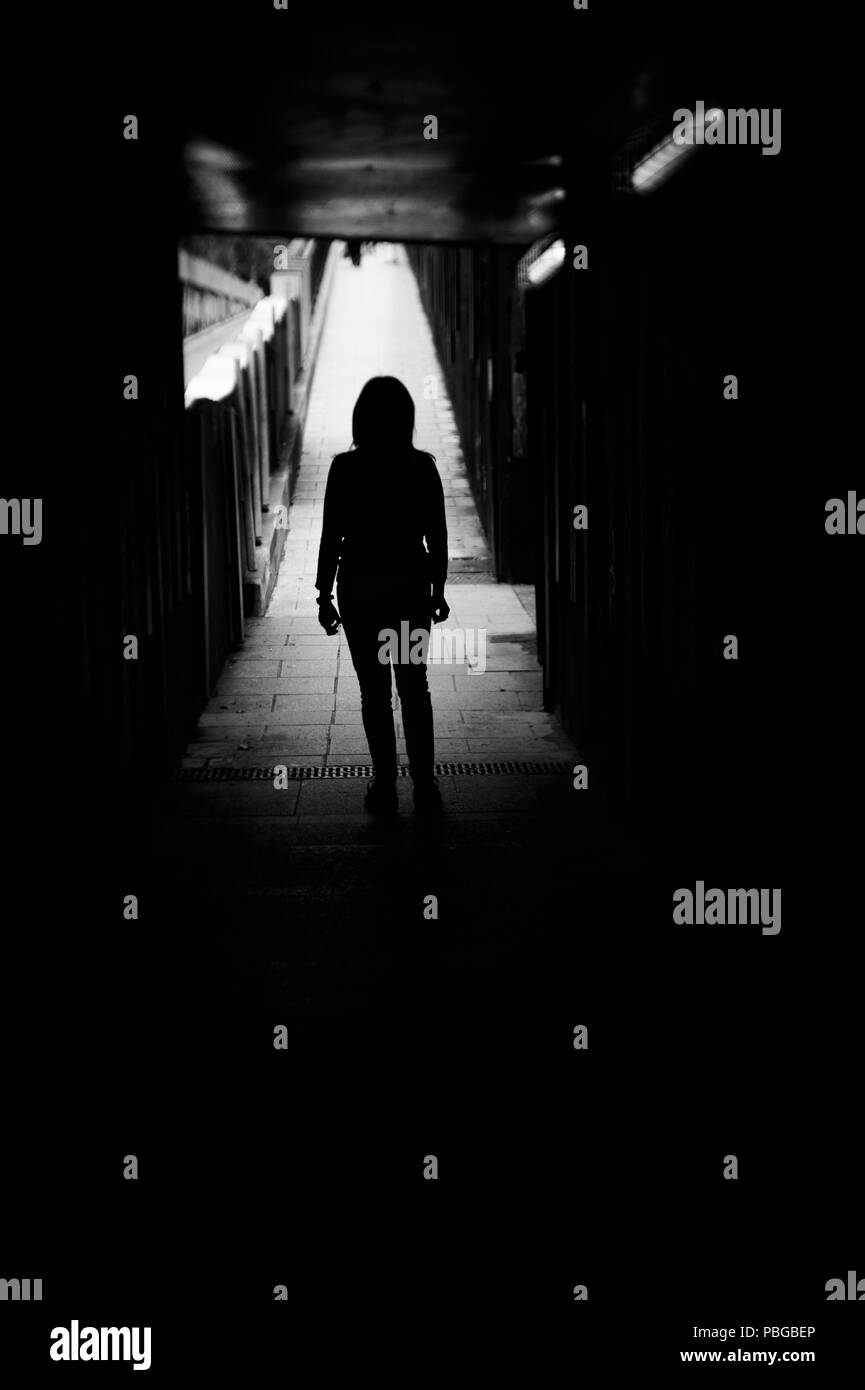 Donna Sola E Triste In Un Tunnel Scena Di Mistero E Di Desolazione Foto Stock Alamy