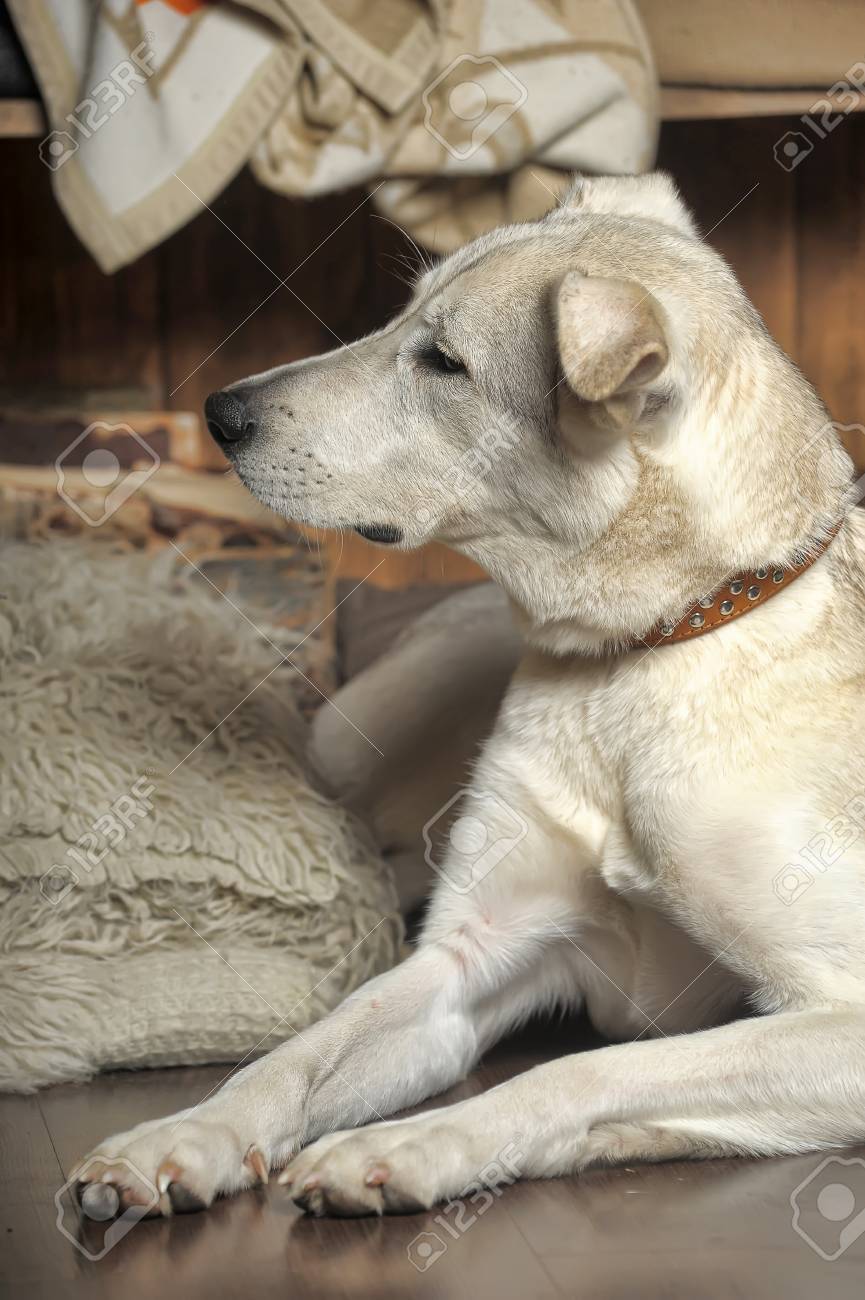 Immagini Stock Cane Bianco E Triste E Sola Image