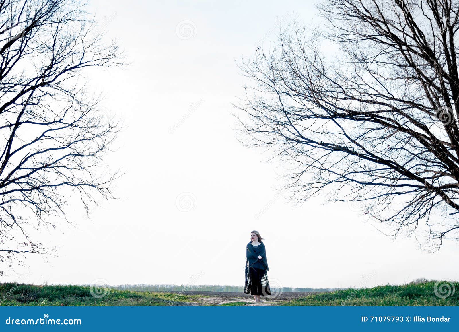 Donna Triste E Sola A Piedi Nudi Sul Prato Immagine Stock Immagine Di Vestito Ragazza