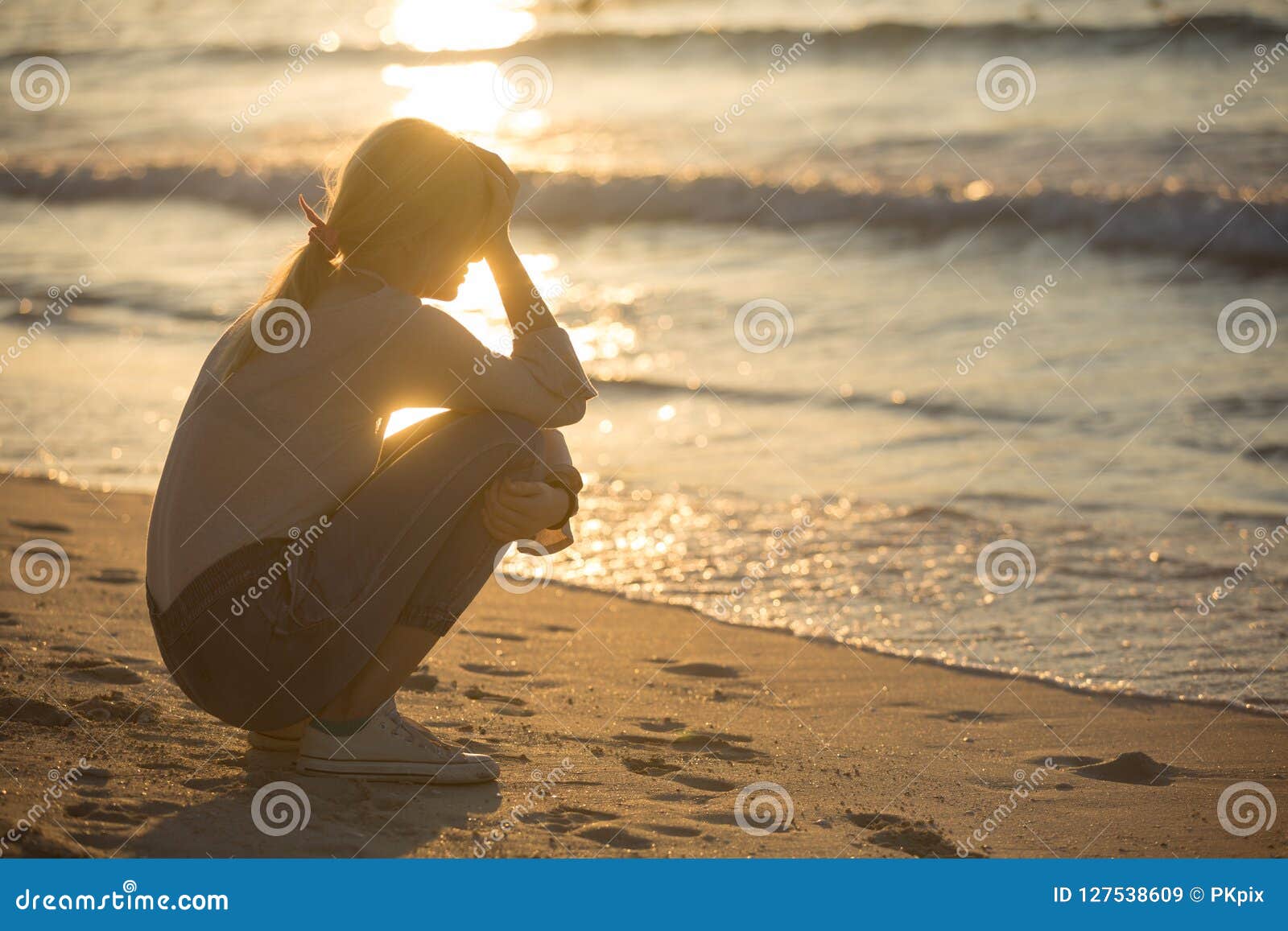 Giovane Donna Triste E Sola Alla Spiaggia Immagine Stock Immagine Di Aggiunta Sensibilit