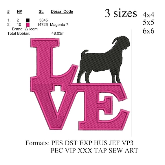 Disegno Di Ricamo Di Boer Goat Amore Chevre Di Motif De Etsy