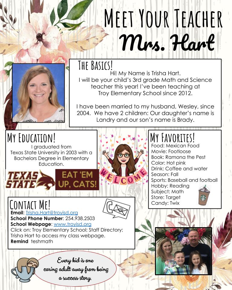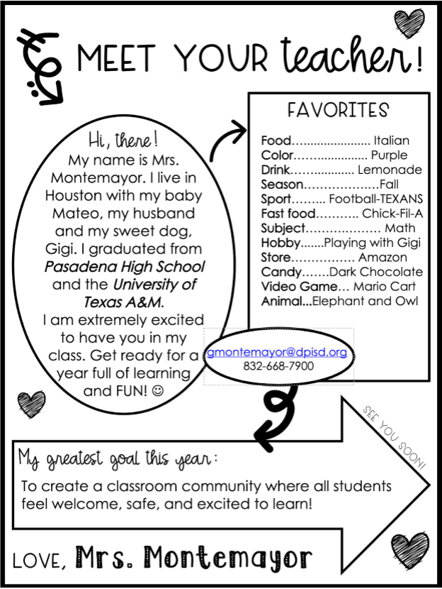 Meet your teacher. I am confident that we will learn, laugh, explore, and create many memories together this year!. Who would of ever thought that we would be starting the school year 100% online The learning must continue and it is my job to motivate, inspire your my students to give 110% effort I am entering my second year of teaching at Gaston Middle School. Meet your teacher layout to send out before the beginning of term 1.