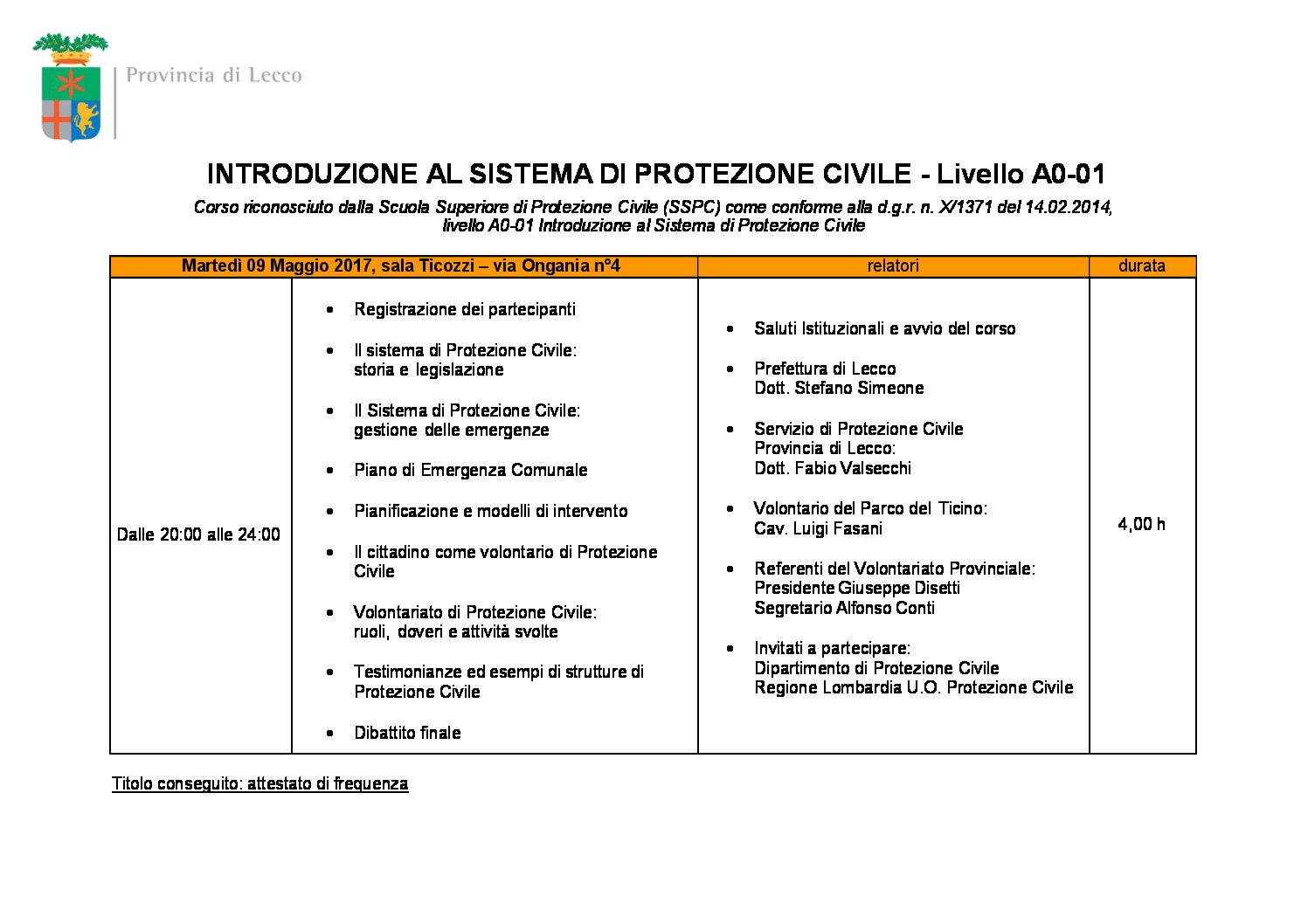 Programma Corso A0 01 Protezione Civile A I B Moggio Lc