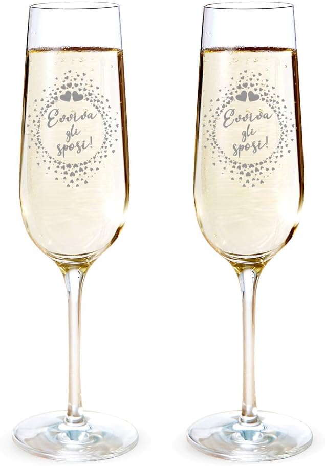 Amavel Set 2 Calici Da Spumante Con Incisione Evviva Gli Sposi Motivo Cuori Bicchieri Per Coppie Flute Da Champagne Decorazioni Nozze Accessori Casa Amazon It Casa E Cucina