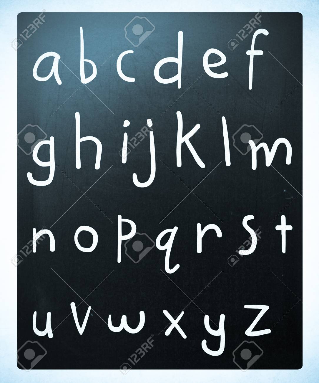 Immagini Stock Completa Alfabeto Inglese Scritta A Mano Con Gesso Bianco Su Una Lavagna Image