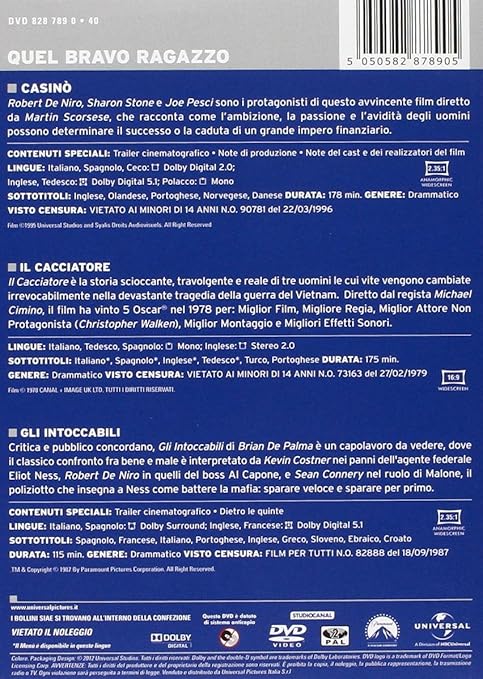 Amazon Com Casino Il Cacciatore Gli Intoccabili 3 Dvd Import Robert De Niro Meryl Streep Brian De Palma Movies Tv