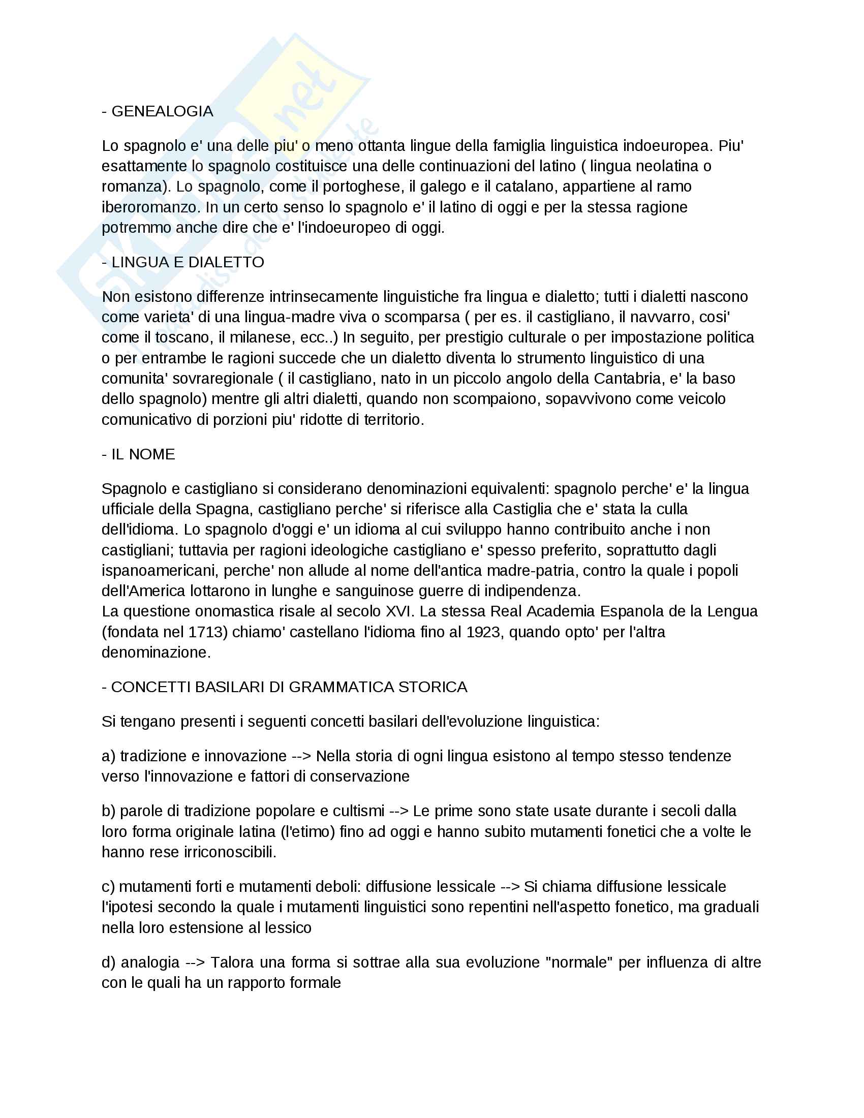 Storia Lingua Spagnola Appunti Di Lingua Spagnola