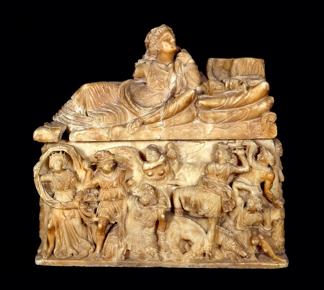150 27 B C Etrusca Stile Ellenistico Urna Cineraria Museo Archeologico Nazionale Di Firenze Italia Sfondo Nero Foto Stock Alamy