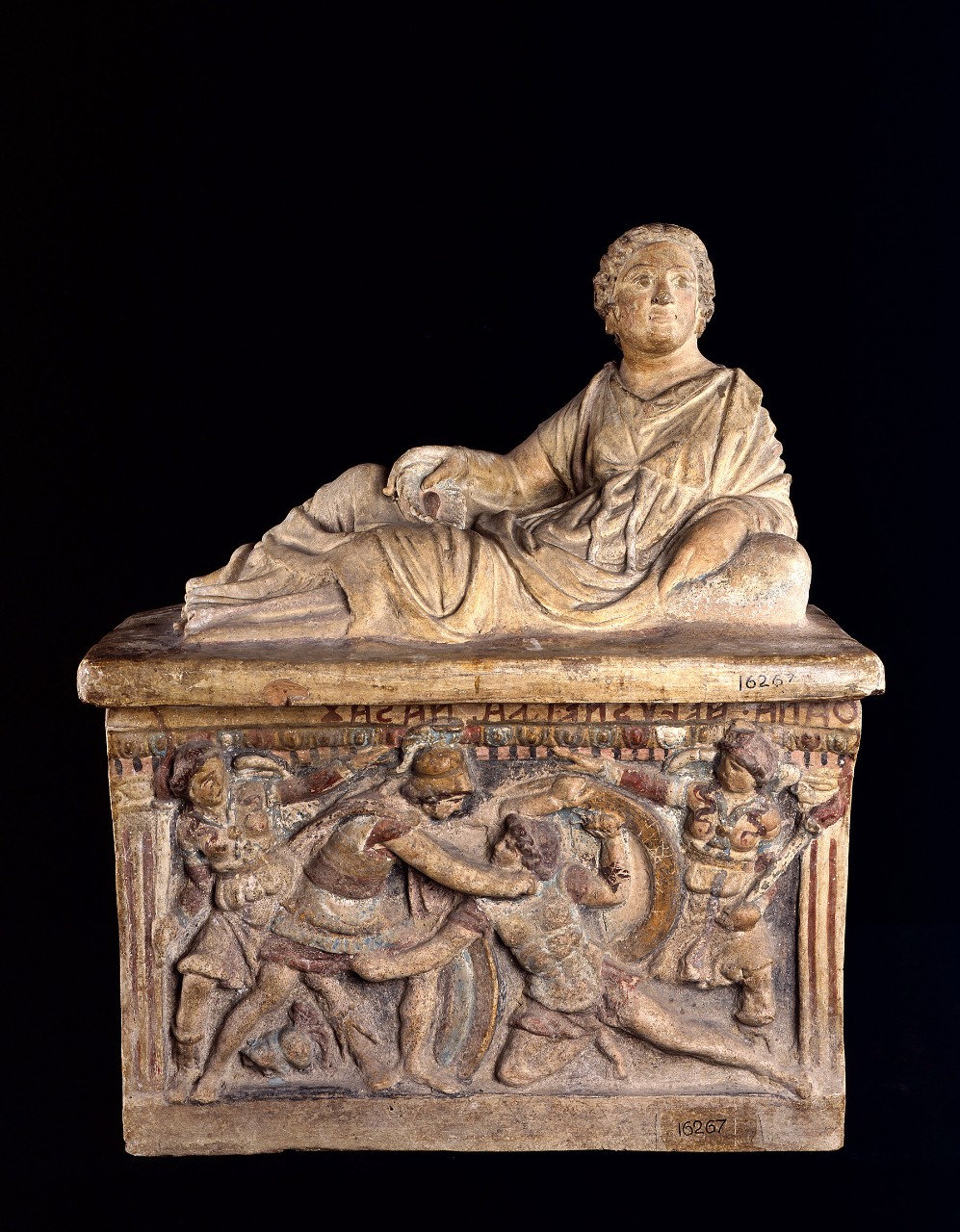 File Arte Etrusca Urna Cineraria In Terracotta Con Policromia Forse Autentica 150 Ac Ca 02 Jpg Wikimedia Commons