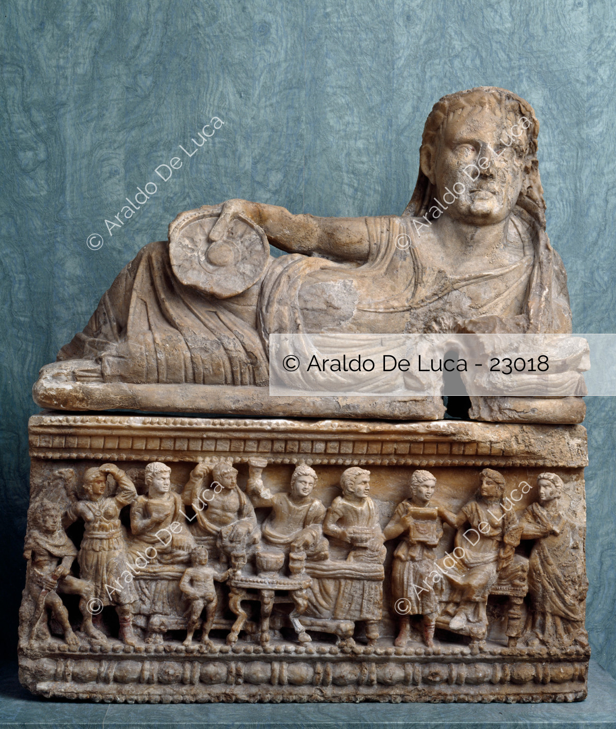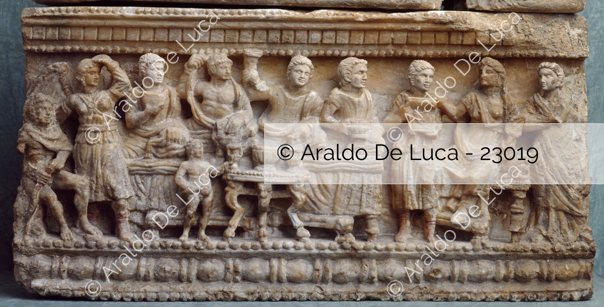 Urna Cineraria Etrusca Particolare Della Cassa Con Scena Di Banchetto