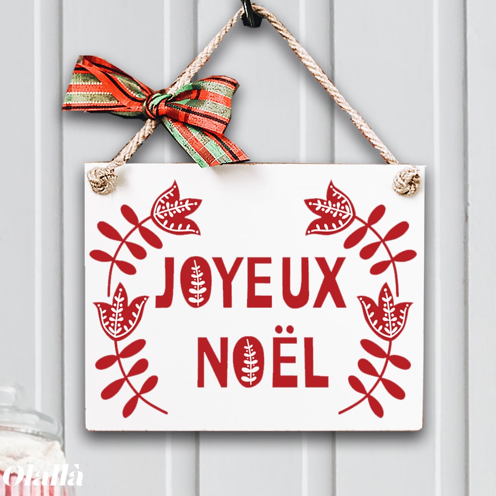 Targhetta Colorata Joyeux Noel Con Decoro Floreale Natalizio Addobbo Di Natale Da Appendere Alla Porta Olalla