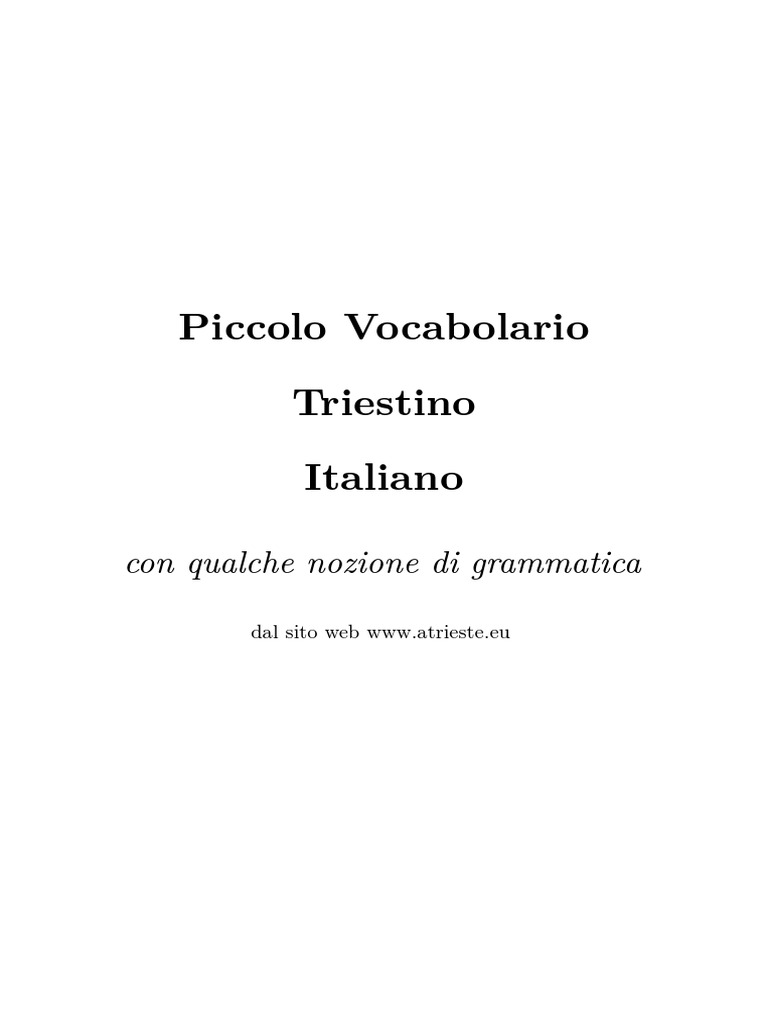 Piccolo Vocabolario Triestino Italiano Con Qualche Nozione Di Grammatica