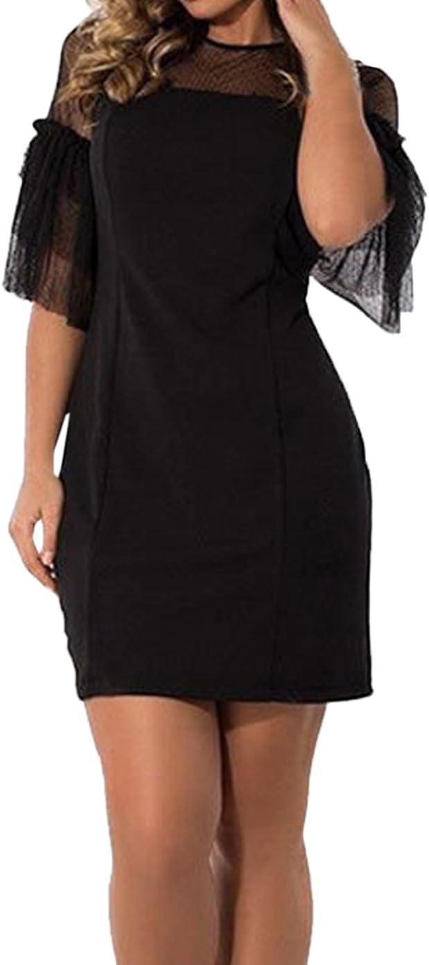 Estivo Donne Vestito A Tubino Moda Tulle Cucitura Maniche A Campana Abito Sottile Tinta Unita Vestito Da Partito Festa Cocktail Amazon It Abbigliamento