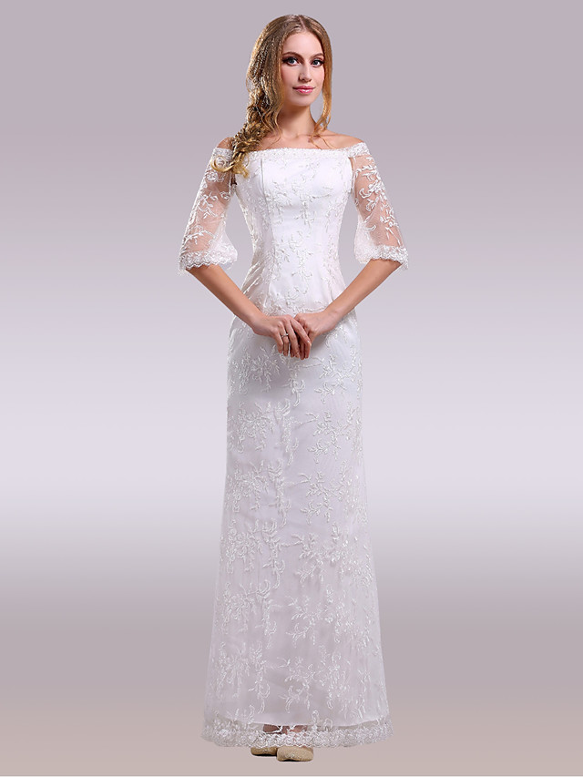 A Tubino Senza Spalline Lungo Pizzo Su Raso Abiti Da Sposa Su Misura Con Di Pizzo Di Trasparenti Scollatura Posteriore Del 21 A 179 99