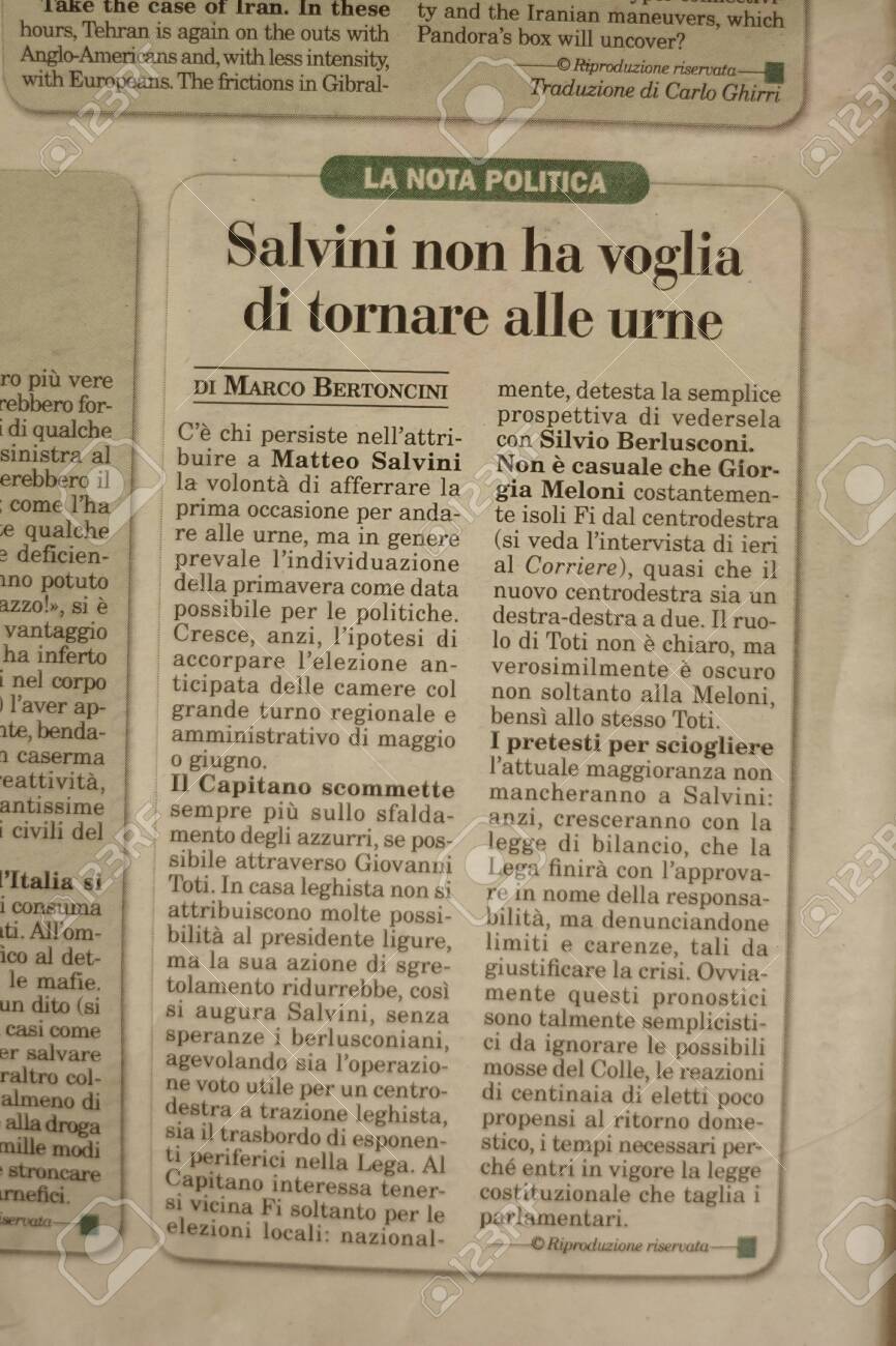 Salerno Italy November 1 19 The First Page Of Italia Oggi Stock Photo Picture And Royalty Free Image Image