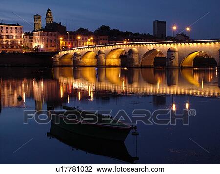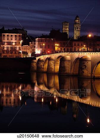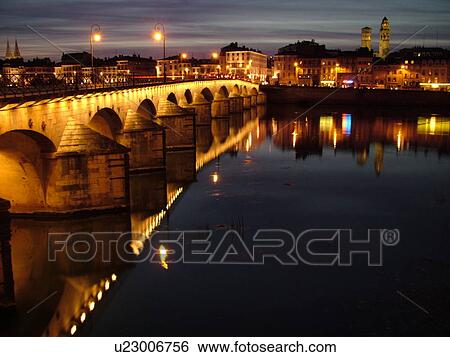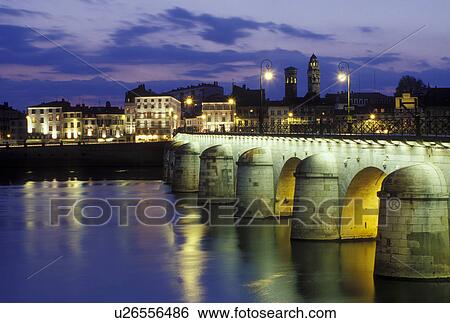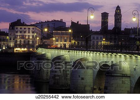 Francia Macon Borgogna Saone Et Loire Europa Saone Fiume Il 11 Secolo Pont De St Laurent Sera Immagine U Fotosearch
