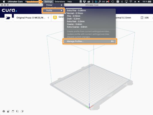 Prusa Knowledge Base Come Importare I Profili Su Cura 4 X Windows Macos