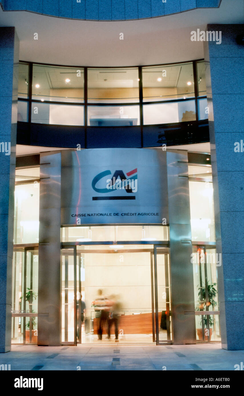 Parigi Francia Credit Agricole Banca Corporate Headquarters Building Durante La Notte Sportello Anteriore Porta Di Vetro Segno Logo Aziendale Foto Stock Alamy