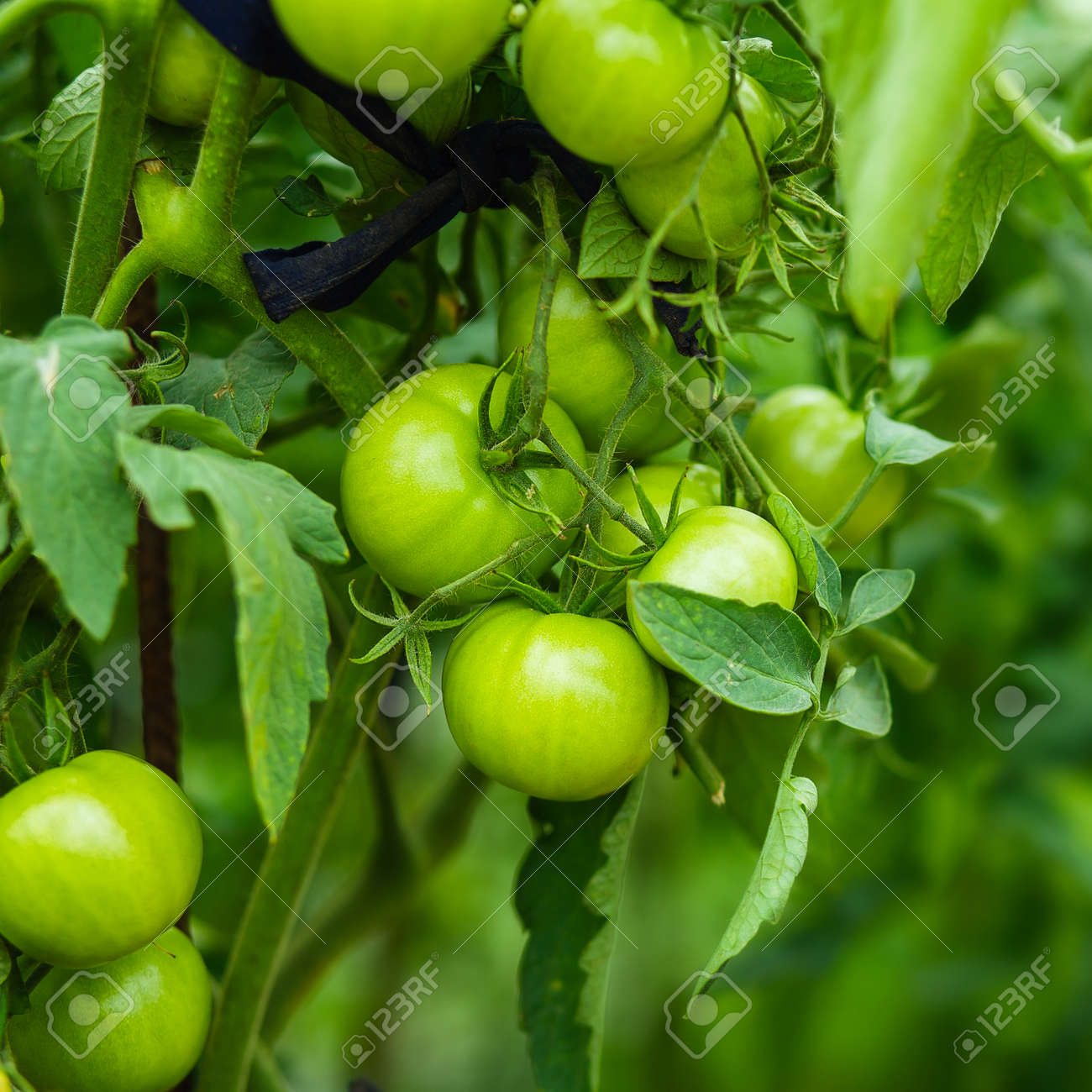 Immagini Stock Pomodori Verdi Su Giardino Profondita Di Campo Image