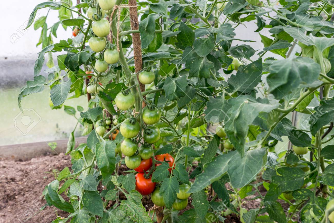 Immagini Stock Pomodori Verdi Di Immaturita Sul Cespuglio Di Pomodori In Una Serra Image