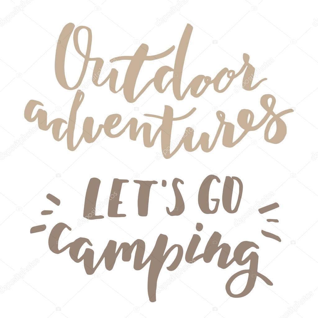 Camping Hand Drawn Brush Letterings Adventures Typography Outdoor Adventures And Lets Go Camping Quotes Modern Calligraphy Brushpen Lettering Premium Vector In Adobe Illustrator Ai Ai Format Encapsulated Postscript Eps Eps Format