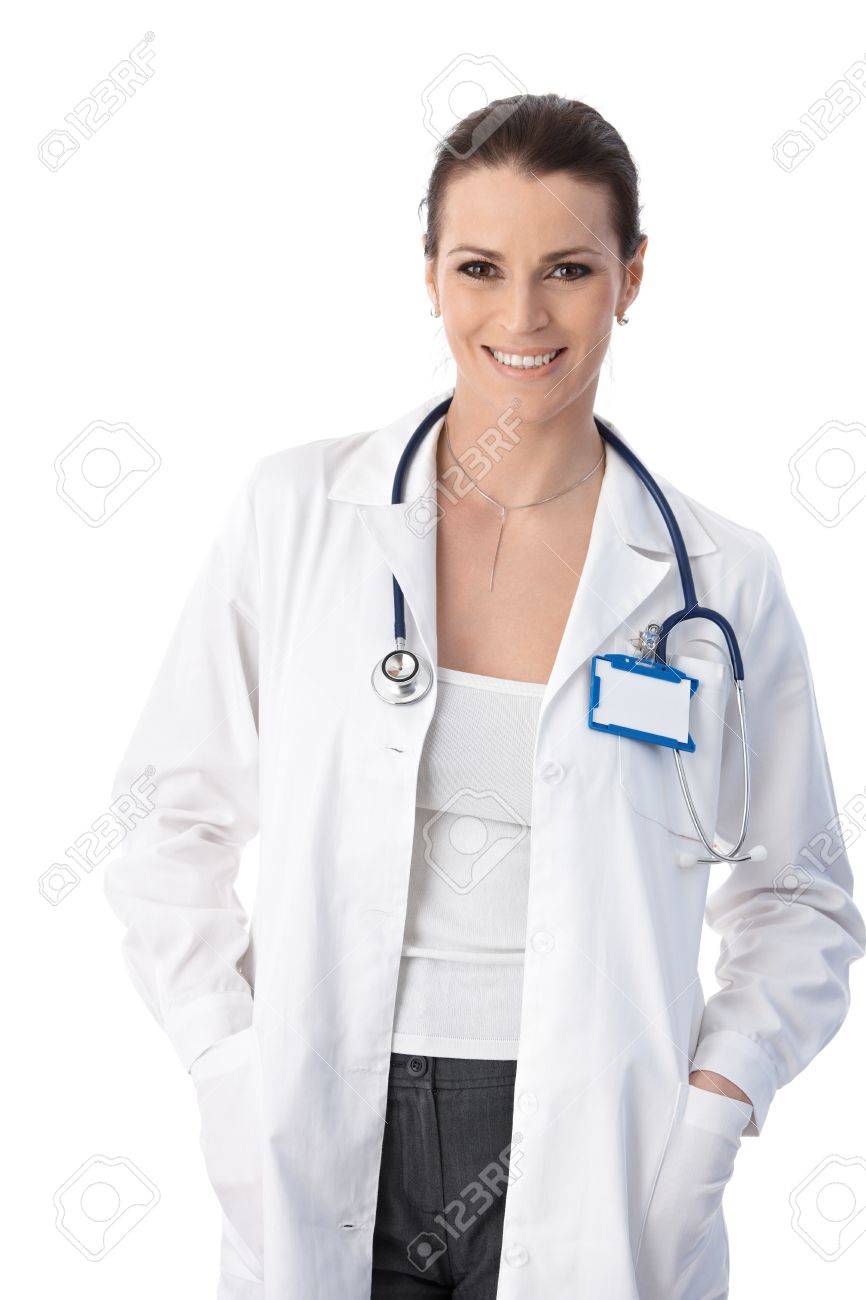 Studio Portrait Of Happy Medical Expert Woman Smiling At Camera Stock Photo Picture And Royalty Free Image Image