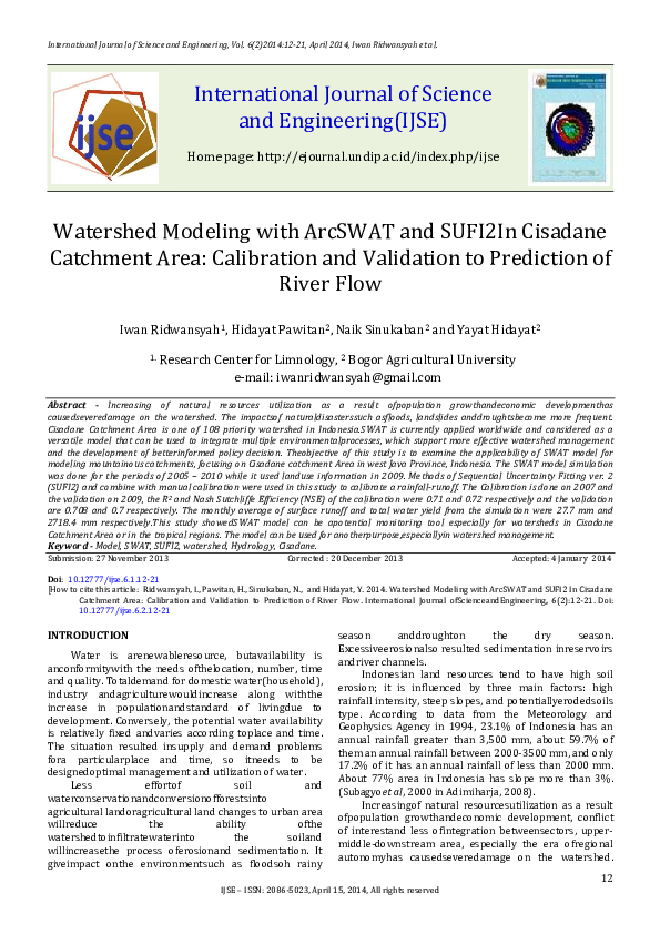 Pdf Watershed Modeling With Arcswat And Sufi2 In Cisadane Catchment Area Calibration And Validation Of River Flow Prediction Yayat Rahmat Hidayat Academia Edu