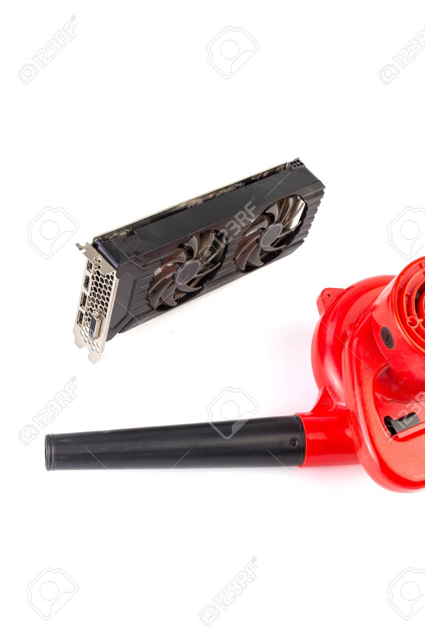 Electrical Air Blower And Dusty Pc Video Card Isolated On White Background Canstock