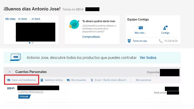 Transferencia Bancaria Bbva