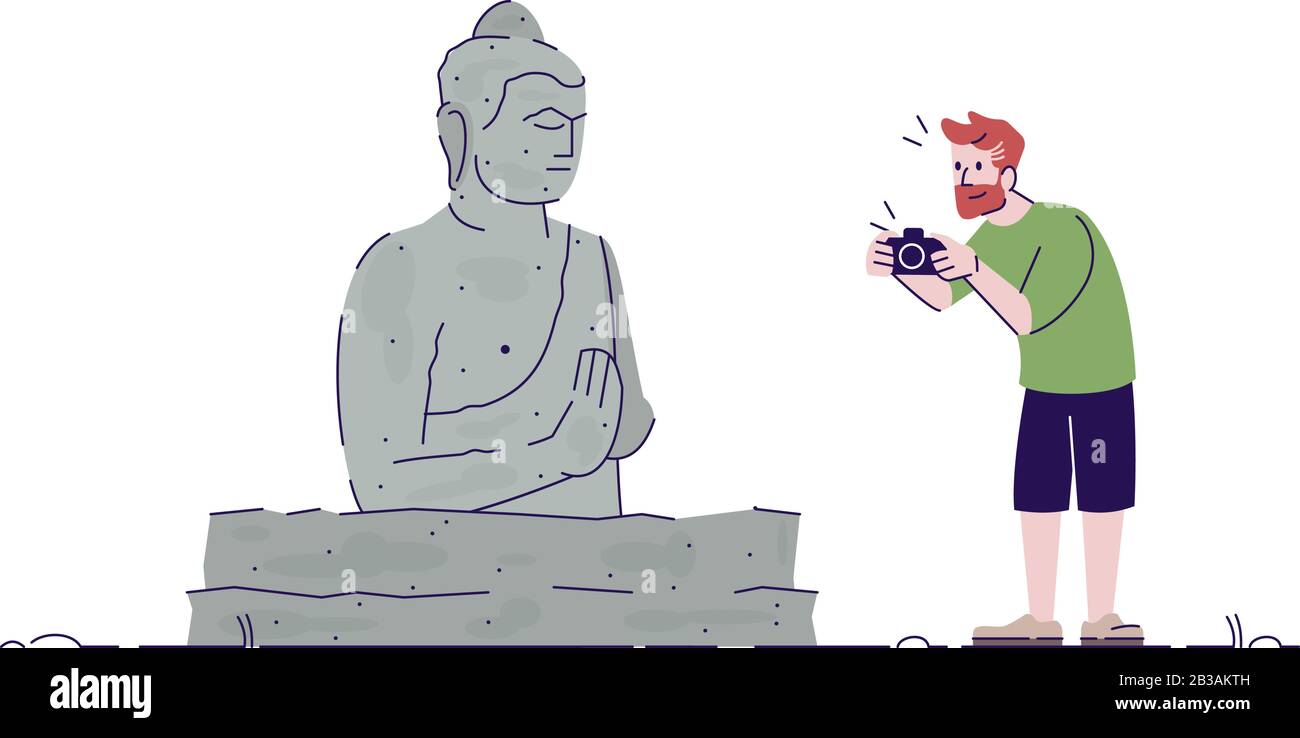 Uomo Che Fotografa Monumento Piatto Doodle Illustrazione Ragazzo Che Scatta Una Foto Della Statua Del Buddha Vacanza In Un Paese Tropicale Indonesia Turismo 2d Cartone Animato Immagine E Vettoriale Alamy