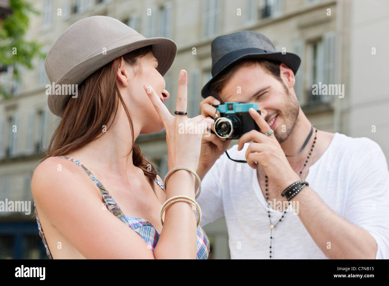 Uomo Di Scattare Una Foto Di Una Donna Parigi Ile De France Francia Foto Stock Alamy
