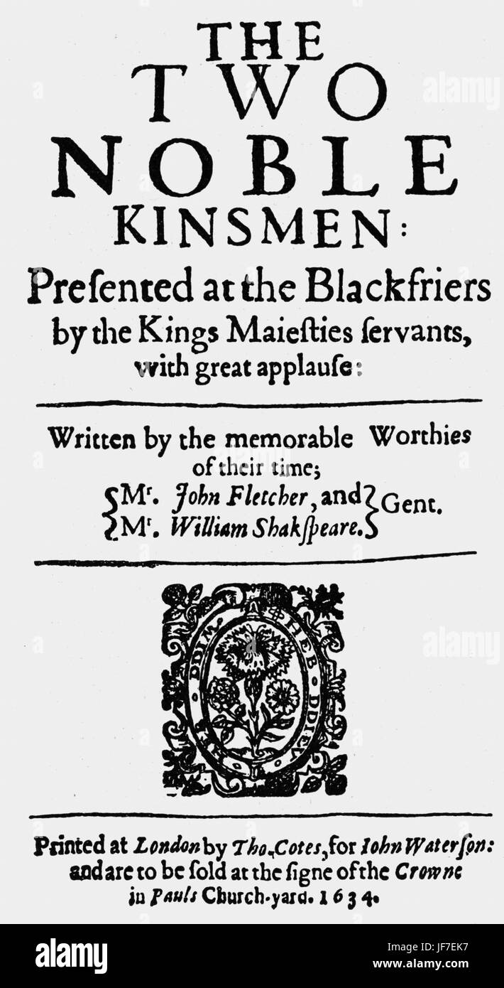 I Due Nobili Parente Titlepage 1634 Commedia Giacobino Co Scritto Da John Fletcher E William Shakespeare Jf Drammaturgo Giacobino 1579 1625 Ws Inglese Poeta E Drammaturgo 26 Aprile 1564 23 Aprile 1616 Foto Stock Alamy