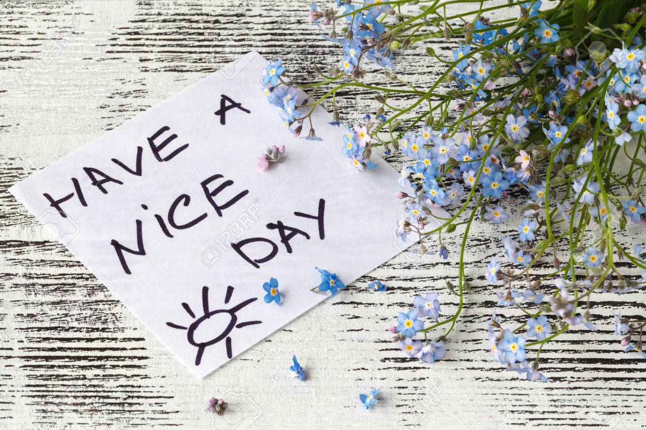 Quote Have A Nice Day Written On Paper With Forget Me Not Flowers Stock Photo Picture And Royalty Free Image Image
