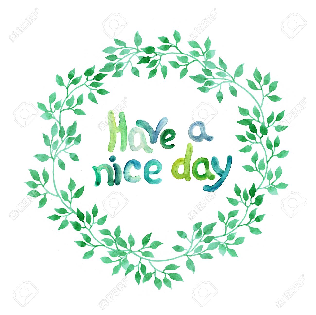 Watercolour Hand Written Word Have A Nice Day In Green Leaves Stock Photo Picture And Royalty Free Image Image