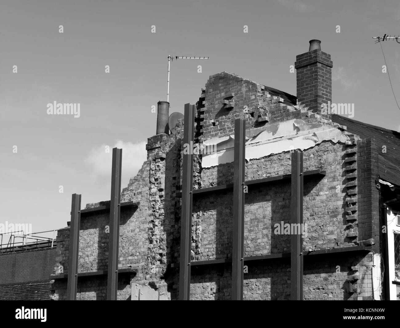 Costruzione Di Puntellare Fino Ad Opera Di Carpenteria Metallica A Causa Di Lavori Di Demolizione E Ricostruzione Della Struttura Adiacente Foto Stock Alamy