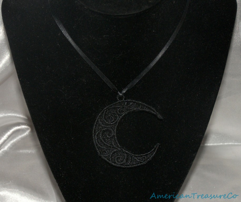 Ricamato Pizzo Nero Crescent Luna 2 Ciondolo O Collana Girocollo Fatto In Usa Ebay