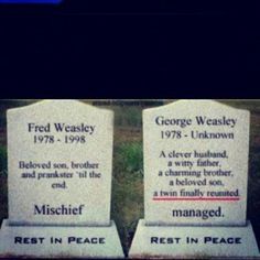 Dear George Love Fred Harry Potter S Twin Sister