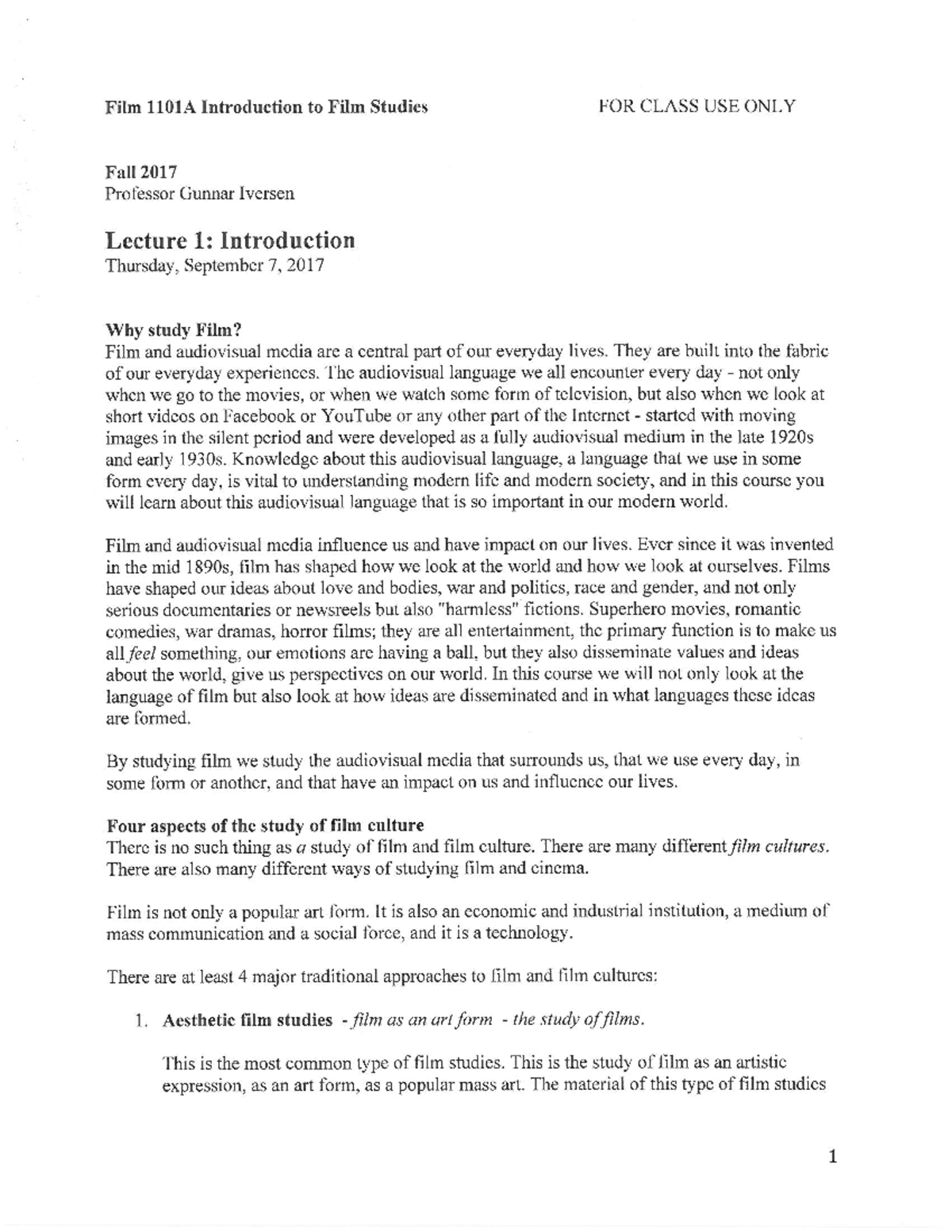Film1101a Lecture 1 Lecture Notes 1 Film 1000 Carleton Studocu