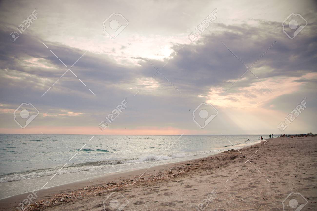 Plage En Ete Au Bord De La Mer Coucher De Soleil Par Temps Nuageux En Mer Banque D Images Et Photos Libres De Droits Image