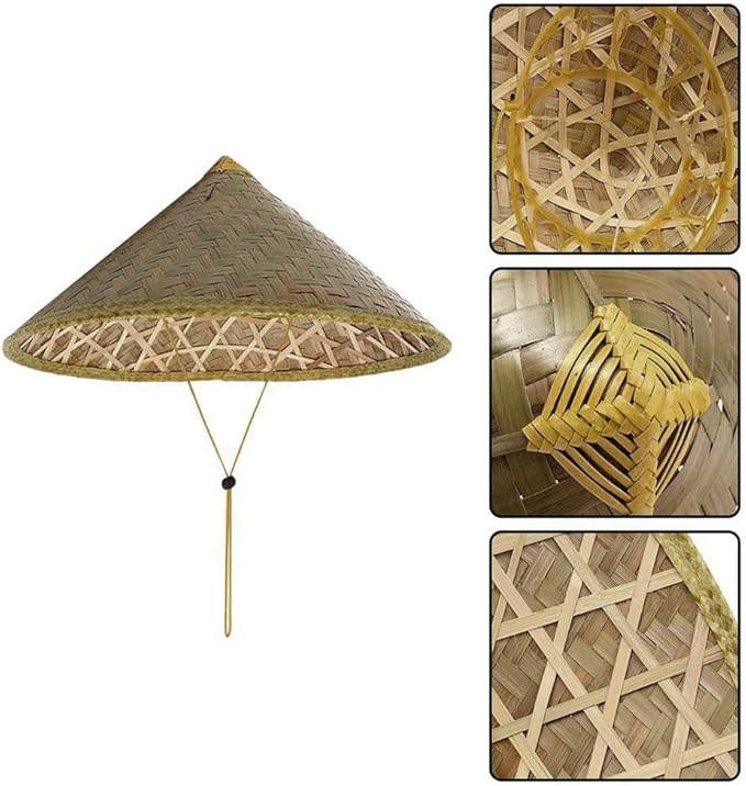 Gambi Manubrio Sport E Tempo Libero Cappello Da Sole Coolie Orientale Cinese Cappello Di Paglia Di Bambu A Tesa Larga Cappello Da Pioggia Turismo Cono Conico Contadino Cappello Da Riso Pesca Unisex