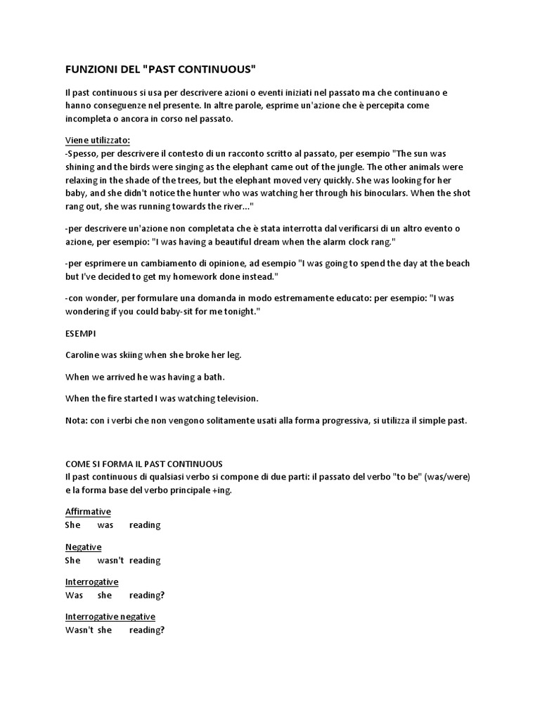 Past Continuous Spiegato In Italiano Docsity