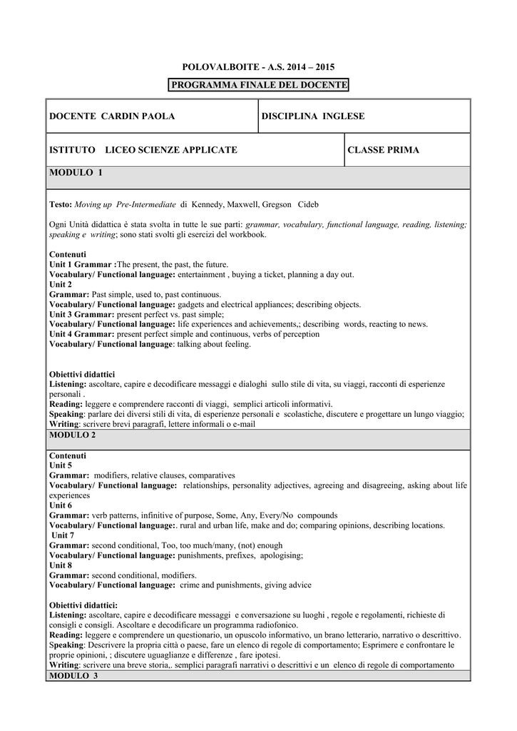 Www Divittoriolattanzio It Home Documenti Programmazionedocenti18 19 Rossi Programmazione Lingua Inglese 1clt Pdf