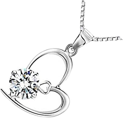 Upco Jewellery Donna Collana Placcata Oro Bianco 18k Con Ciondolo Cuore Doppio 19x13mm Diamante Cz Incastonatura 4 Griffe Colore Pietra Di Nascita Mese Aprile Amazon It Gioielli