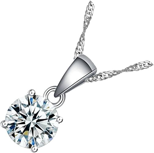 Upco Jewellery Donna Collana Placcata Oro Bianco 18k Con Ciondolo 8 5mm Diamante Bianco Tondo Cz lio Brillante 2 5ct Incastonatura A 6 Griffe Colore Pietra Di Nascita Mese Aprile Amazon It Gioielli